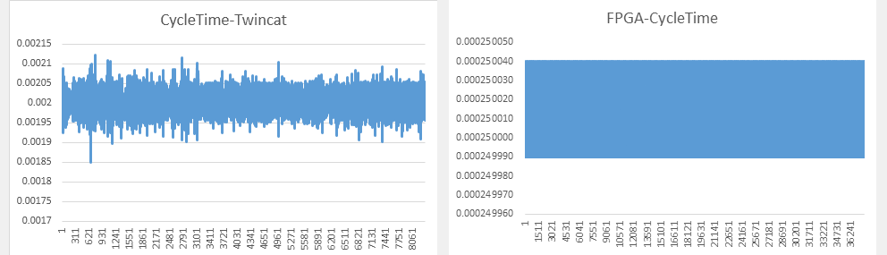 2、更快的循环周期,可以达到31.25us,更低的抖动,抖动时间小于0.004us,同步性能好,主站和各个从站设备可以达到远小于1us的时钟同步精度(4轴实测50ns)