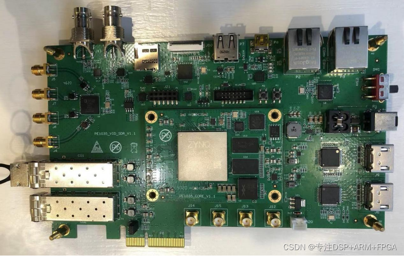 评估板接口资源丰富,引出双路千兆网口、四路 SFP+光口、CameraLink、HDMI、F