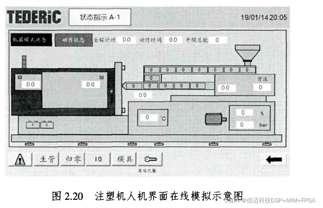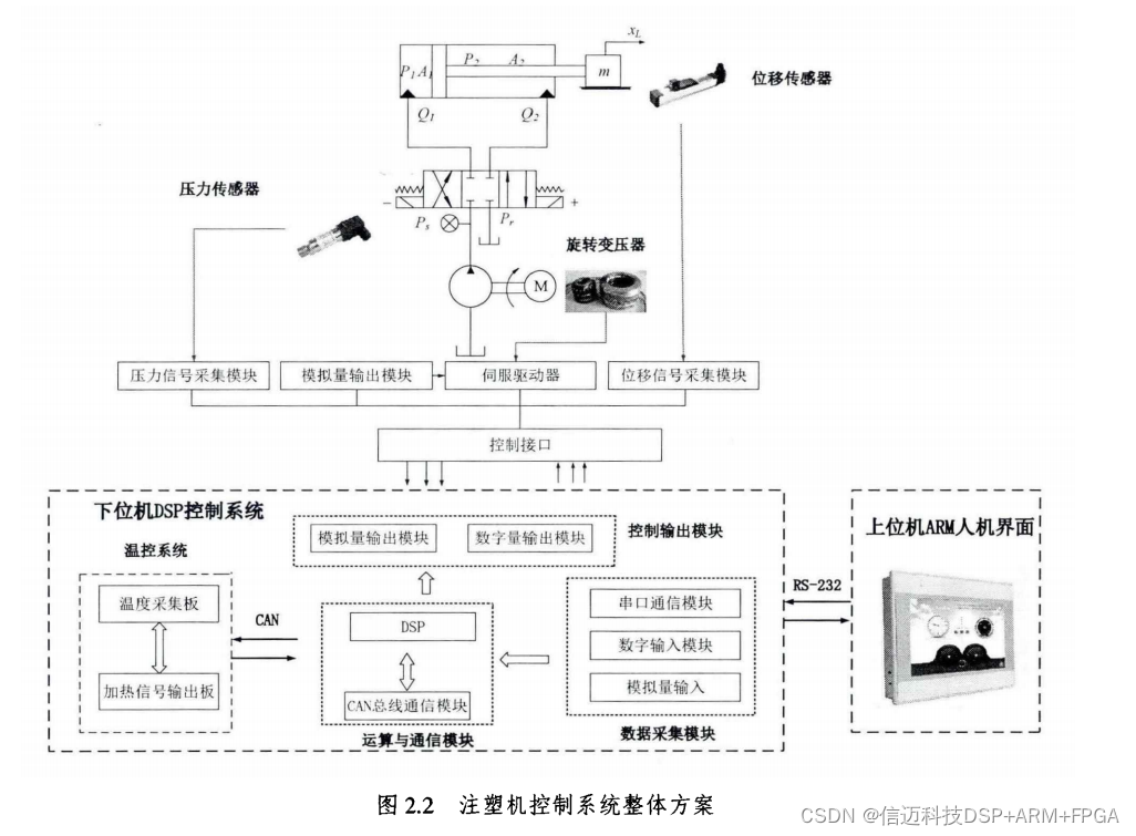 将 D S P 作 为 下 位 机 , ARM 作 为 上 位 机 设 计 了 精 密 的 注 塑 机 控 制 系 统 , 下 位 机 用 于 控 制 算 法 的 运 行 以 及 I/ O 控 制 , 上 位 机 用 于 人 机 界 面 的 以 及 模 具 资 料 的 管 理 , 该 控 制 系 统 实 时 性 好 , 控 制 精 度 高 。 不 足 之 处 是 没 有 在 控 制 系 统 上 设 计 控 制 算 法 , 无 法 验 证 对 不 同 控 制 算 法 的 兼 容 性 。