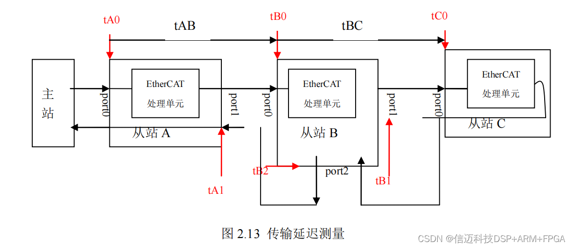 c.主站读取各从站端口本地时间,并依据网络拓扑分析,计算出每一个从