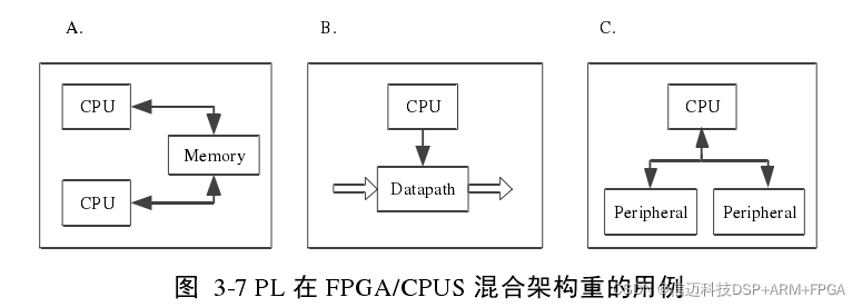 根据PL在Zynq中的功能地位不同,PL的常见用例主要有以下三种类型,如图3-7A、