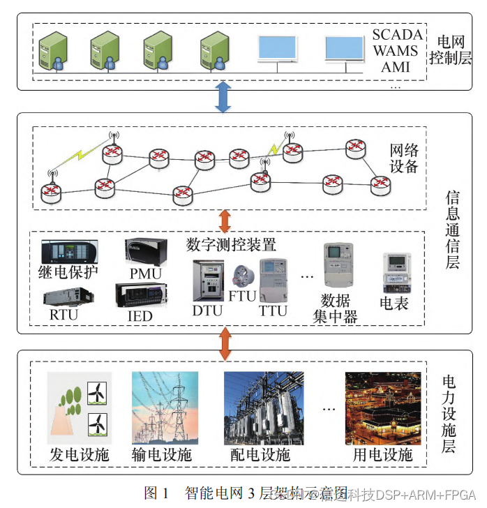 架构上可划分为 3 层:电力设施层、信息通信层、