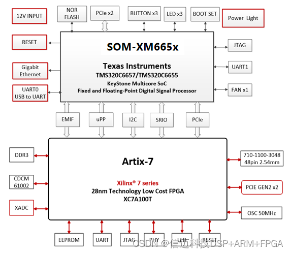 - 基于 TI KeyStone C66x 多核定点/浮点 DSP TMS320C665x + Xilinx Artix-7 FPGA 处理器;