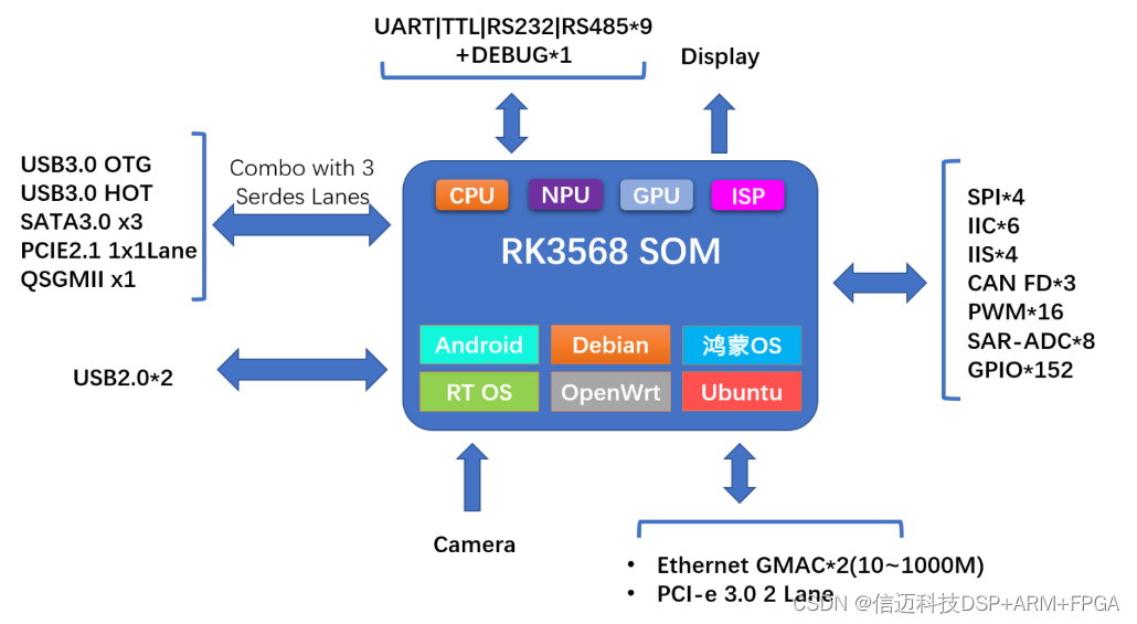控制主板主要功能需求:显示接口,LVDS高清屏、HDMI大屏、5路串口连接各种传感器、PLC、变频器等、多路GPIO、6个USB接口、2路CAN口、2路以太网、WIFI、4G多种入网模式实现远程控制与管理;自带1T NPU,便于AI和各种算法的加持。