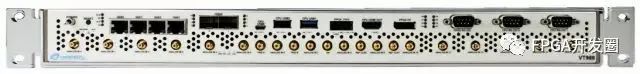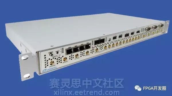 从上面的方块图中可以明显地看到,系统中的 Kintex -7 485T FPGA通过一个接口连接到高速ADC转换接口。这个系统十分适合用于实现灵活高速的I/O任务,同时可以实现数据的实时滤波处理和DDC低频转换,不过从方框图中可以看出 一个问题,那就是我们采集的样本数据都存储到什么地方去了呢?在板卡上,FPGA芯片会同时连接到板卡上的两个100GbE的SFP+ 接口处(或者经由一个板上的GbE选择器选择连接到四个GbE端口),从而实现样本里data的搬移存储,但是,尽管如此,如果ADC模块全部全速运行的话,这些端口还是没法满足快速将如此多的ETH数据迁移运输,所以说,对于data的存储还是需要有本地存储单元来支持,尤其是如果你的处理程序需要用到一些板卡上的数据时,本地存储就比ETH获取数据方便很多。