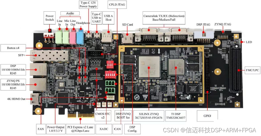 - 基于 TI KeyStone C66x 多核定点/浮点 DSP TMS320C665x + Xilinx ZYNQ7045 FPGA 处理器;