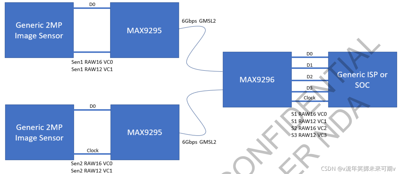 1. Deserializer 解串器选择MAX9296 支持6Gbps,传输速率更高、可支持Sensor像素更高、帧率快 2. 硬件在POC段的设计需向下兼容GMSL1(按照Maxim默认设计不支持GMSL1) 3. 8路摄像头的同步触发设计? 4. GMSL摄像头与其他传感器的同步方案? 5. I2C总线与I2C扩展IC 选型 6. 物料选型特别是电感等