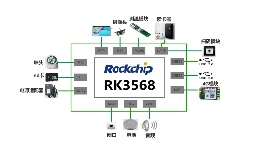 采用瑞芯微RK3568四核64位Cortex-A55处理器,主频最高2.0GHz , 效能有大幅提升;采用22nm先进工艺,具有低功耗高性能的特点。