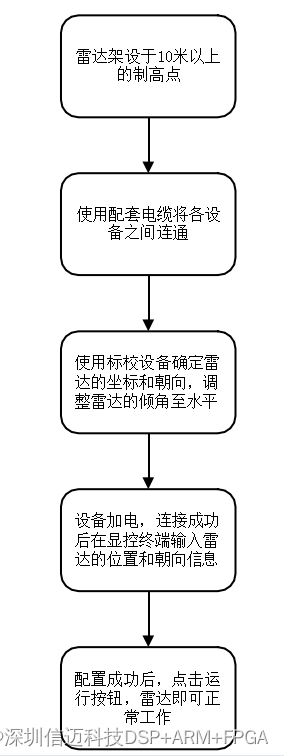 雷达架设于离地高度 10 米以上的制高点,确保雷达与被监测区域之间通视无遮挡。使用标校设备,对雷达架设进行配平,并确定雷达架设地点的坐标及雷达朝向。