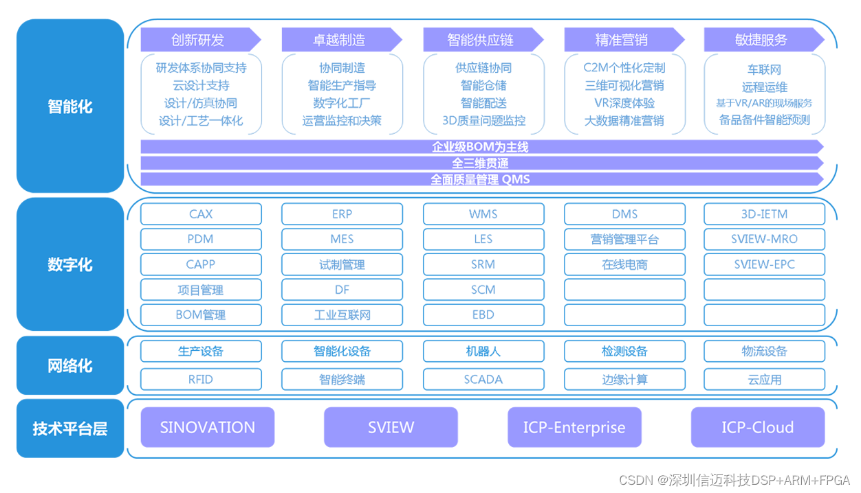 信迈工程机械行业智能制造解决方案,将信迈自主的信息 技术 、企业数字化技术与工程机械行业的先进制造技术进行深度融合,贯穿于产品营销、研发、制造、服务等全生命周期的各个环节及相应系统的优化集成,实现工程机械制造的数字化、网络化、智能化,并不断提升企业的产品质量、效益、服务水平,推动企业的创新、绿色、协调、开放、共享发展。