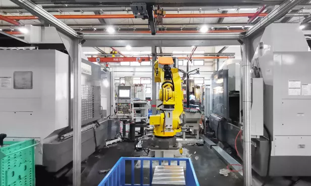 • 人工放置料筐就位后,视觉拍照识别料筐及工件位姿,引导机器人完成深筐抓取