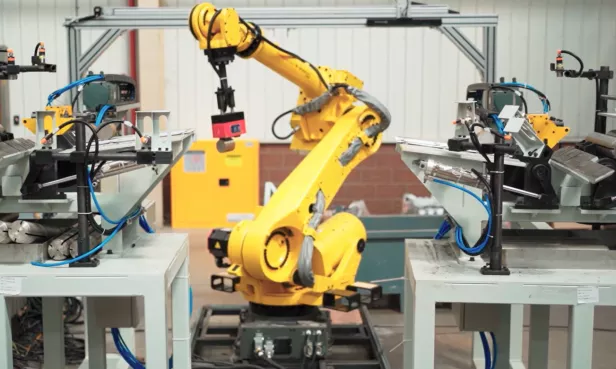 • **集3D引导抓取和2D识别为一站:**为了满足客户生产需求,为客户设计规划 工作站 集3D引导抓取和2D识别为一站,并新增了新增2D相机识别工件二维码贴图功能,极大提高了产线生产力。
