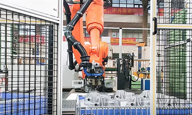 客户为西南某大型汽车零部件制造及总成厂商,需求借助3D视觉配合打磨机床作业,实现自动抓取上料以及定位下料。来料为深筐逐层平铺的铝合金铸造件,结构复杂,并存在一定程度的倾斜,抓取后下游需配合精准的激光打标,视觉位姿精度要求高。