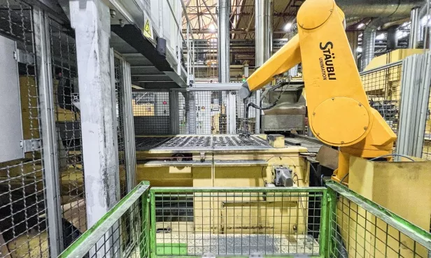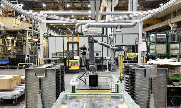 客户为某知名外资汽车零部件企业,其位于华东的工厂需求3D视觉实现喷砂机床的上料自动化。工件为板状多孔金属件, 厚度仅5mm,有序堆叠于深筐,需匹配喷砂机床高速上料作业。