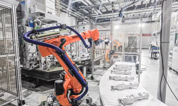 客户为某知名外资汽车零部件企业,其位于华东的工厂需求3D视觉实现控制臂的上料自动化。工件共9种规格,均为铝合金铸件,表面材质高度反光。工件经皮带线运输,需抓取放置于治具台上。
