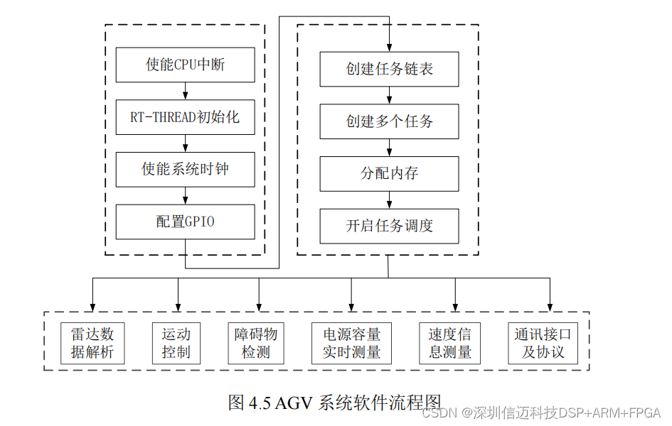 AGV 软件系统采用基于 RT-Thread 实时操作系统,可完成 AGV 位置数据采集和跟