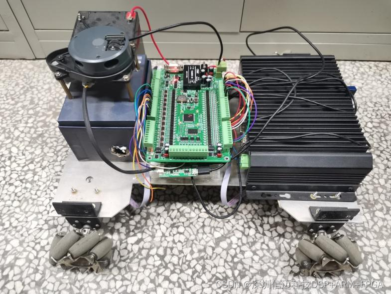 流减速电机,附带有 4 个直径为 6cm 麦克纳姆轮,车身中央安装控制器板,车身侧边装