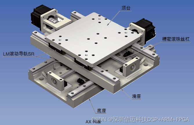 日本在精密装备的制造上也已经有多年的积累,在国际上也占有十分领先的地位。日本精密装备厂商 THK,提供的精密 XY 平台与本运动平台具有较多的相似之处,并具有种类丰富、多自由度行程和精度可以自由选择和组合的特点,典型结构如图 1-3 所示。