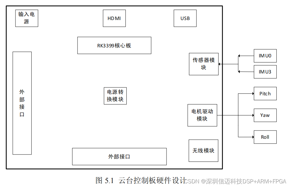 本文采用了瑞芯微 RK3399 作为手持稳定云台控制系统的控制芯片,本文设计了云