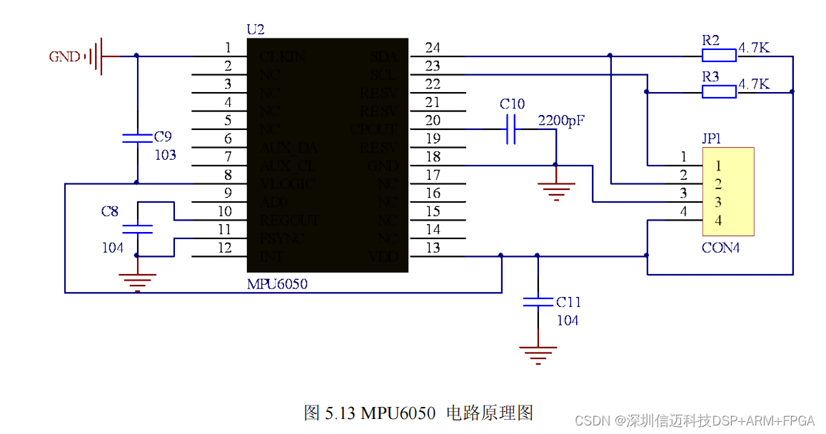 MCU6050,另外还有一个 IIC 接口:AUX_CL 和 AUX_DA 用来连接上文所说的第三方