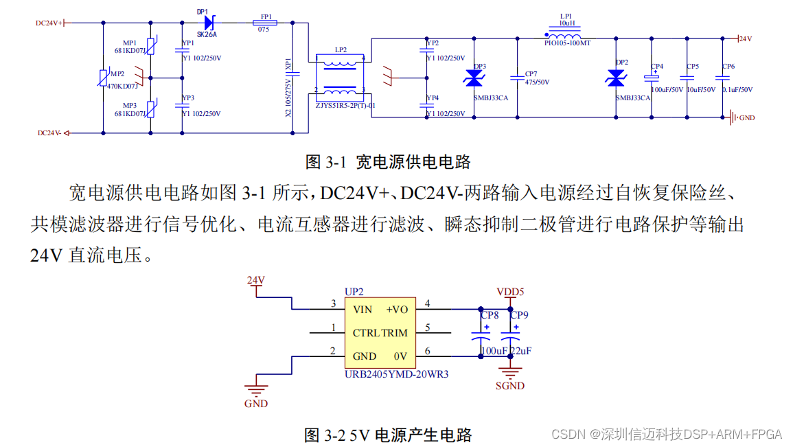 提供的 24V 电压,通过金升阳 DC/DC 模块电源,产生系统所需的 5V 电压。