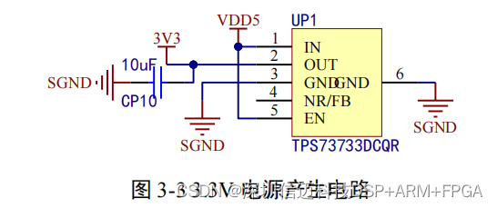 本设计选用 TPS73733DCQR 稳压芯片,如图 3-3 所示,使用 NMOS 通晶体管实现超低