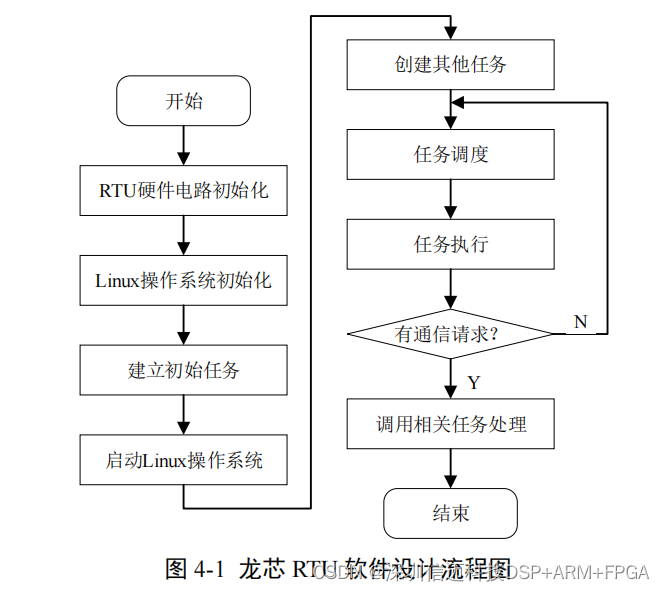 应用程序设计。将各个模块设计为不同的任务,龙芯 RTU 软件设计流程图如图 4-1 所示。