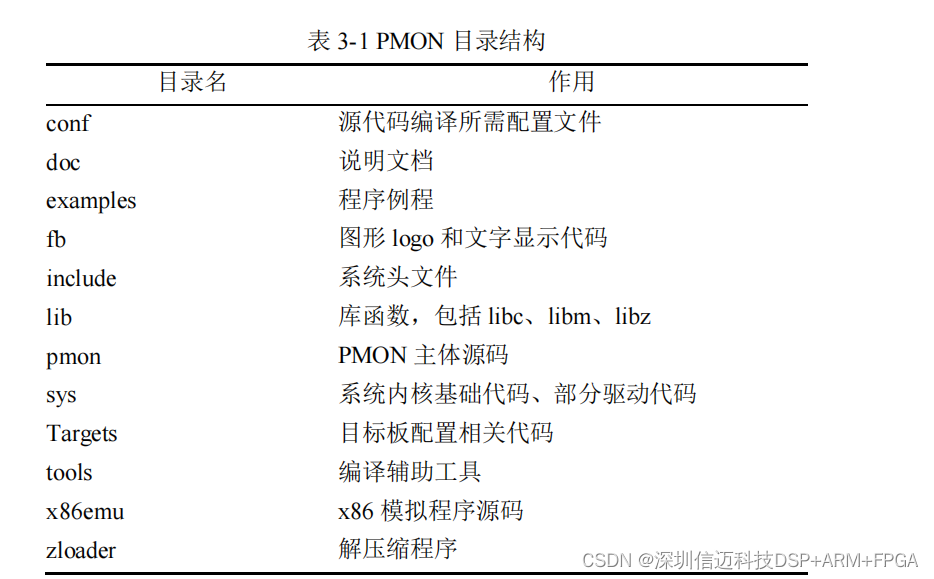 PMON 目录结构如表 3-1 所示,PMON 目录下包含处理器相关代码和一些基