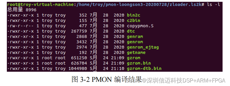 如图 3-2 所示编译完成后在 pmon 源码目录下的 zloader.ls2k/目录下生成