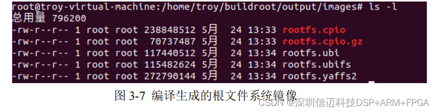 编译成功后,如图 3-7 所示/buildroot/output/images/目录下会生成 cpio、
