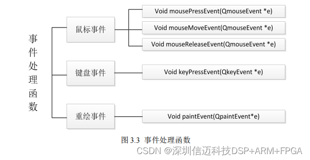去触发。比如鼠标操作和键盘的键入。这些操作在 Qt 中都有对应的函数来响应。图 3.3