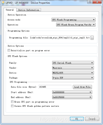 实际使用flash为MX25L1606EM1I-12G,但选项如上,可以支持。