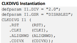 有4个分频器(bank1,bank2各2个),可以对外部输入的时钟进行2, 3.5, 4, 7和8倍的分频。 调用代码如下:
