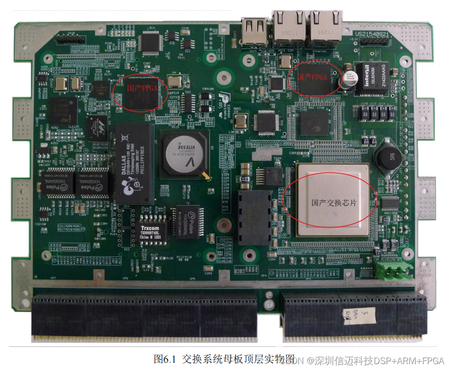 下图所示。图 6.1 为交换系统母板的 TOP 层,图 6.2 为电源子板和 CPU 子板的 TOP