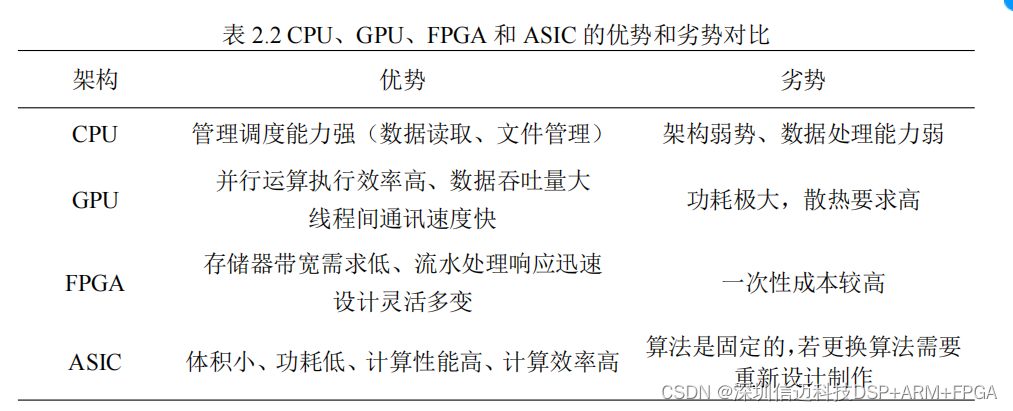 于 FPGA 没有存取功能的原因,因此,计算速度快,运行功耗低,但整体的运算量
