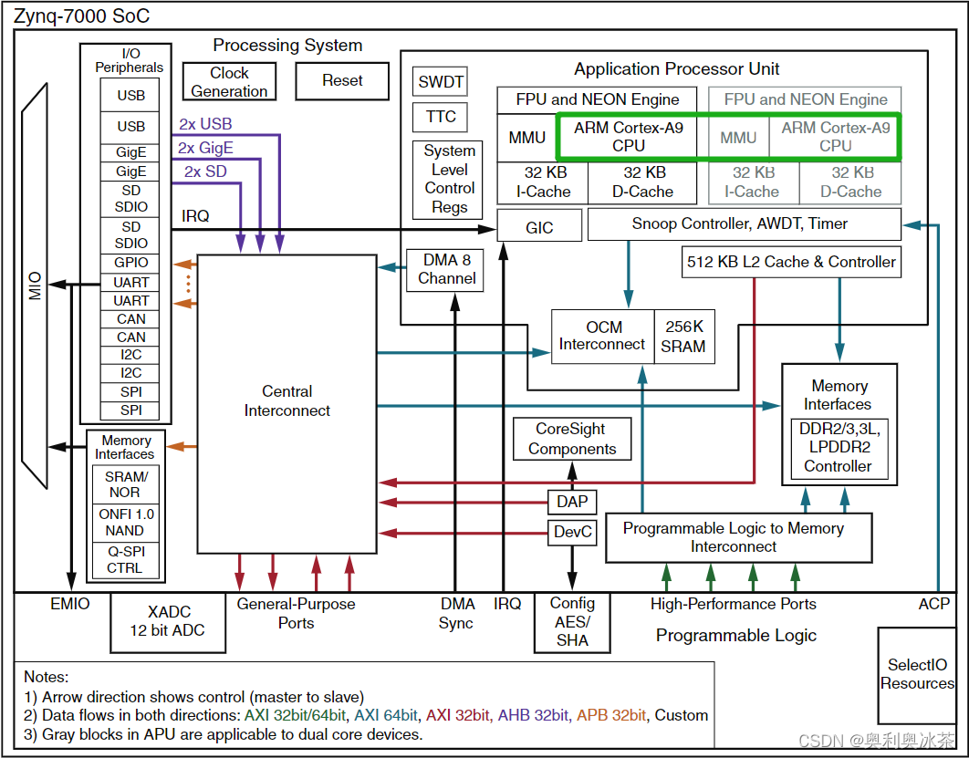 处理系统(PS):四核处理器、最高主频 1GHz;