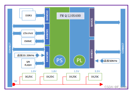 晶振:PL 端支持 1 路 50MHz 时钟,PS 端支持 1 路 33.33Mhz时钟;