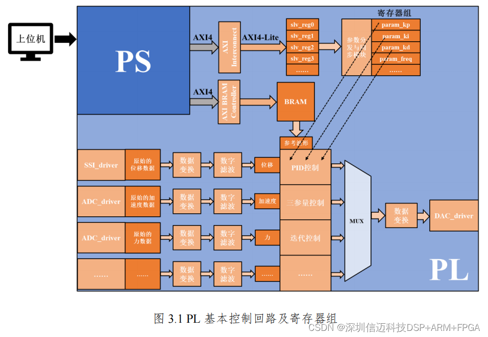 对比,参考信号也需要与实际信号同时传给上位机,这就需要完成从 PL 到 PS 的