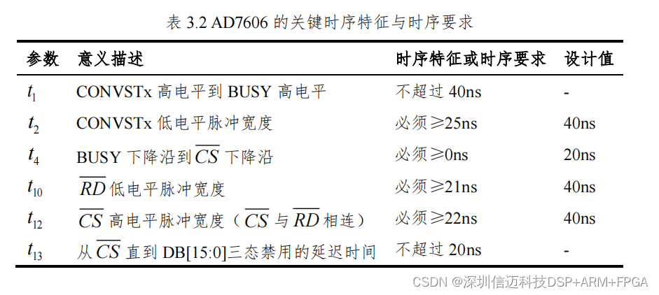 时序特征与时序要求如表 3.2 所示。