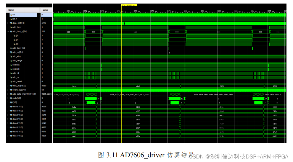 AD7606_driver 模块的仿真结果如下图所示,经过反复修改调试,使其关键