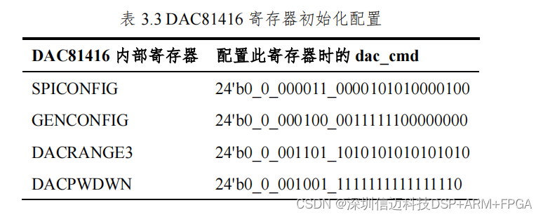 始化阶段,对表 3.3 所示的几个寄存器进行配置,并用 init_done_flag 信号指示初