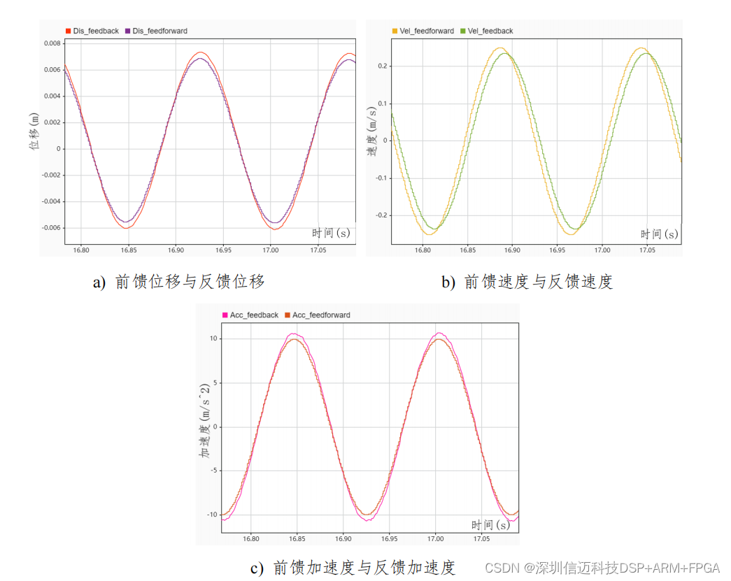 前馈与反馈的位移、速度、加速度波形如图 4.6 所示。