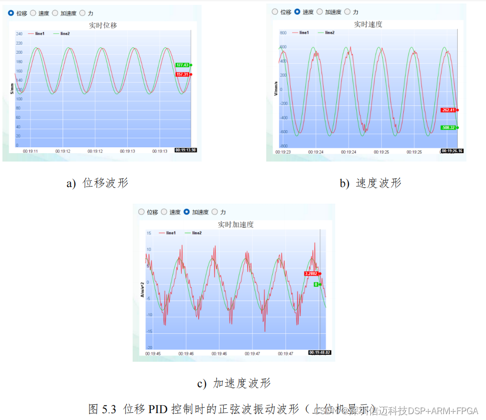红色为实际采集的波形。正弦波的频率为 2Hz,幅值为 50mm。上位机软件支持