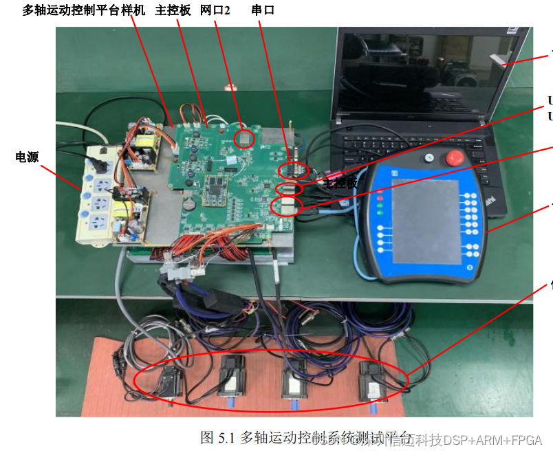 多轴运动控制系统的测试平台搭建如图 5.1 所示。测试平台由安全电源、多轴运