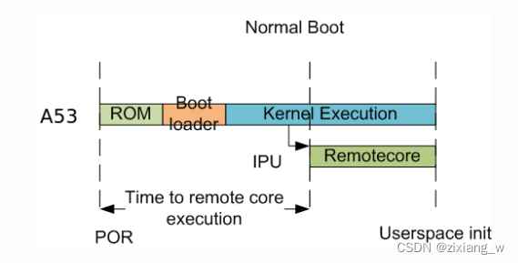 正常情况下,加载程序(U-Boot/SPL)启动,在A53上装载HLOS(Linux/ Android )。然后A53引导R5和M4F核心。