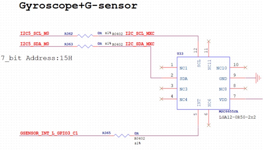 瑞星微开发板自带的陀螺仪型号MXC6655xa,硬件人员说我们的板子和开发板一样,因此检查设备 树 文件找到设备描述: