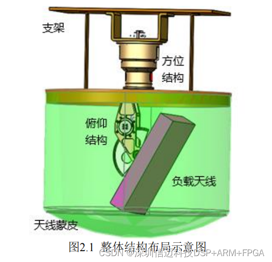 图 2.1 给出了机载雷达伺服控制系统的整体结构布局示意图。其中上半部分为