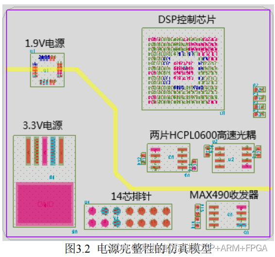 需要说明的是,在进行电源完整性仿真时,DSP 芯片和上位通信接口电路仅起噪声源