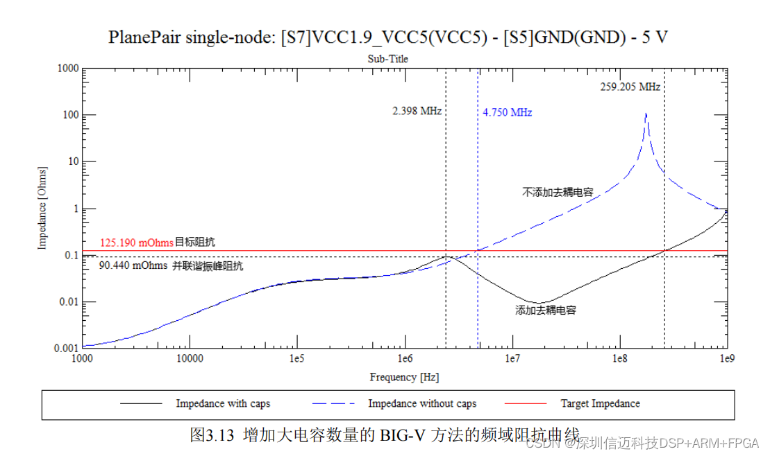 仿真可以对比不同去耦电容网络的去耦能力的差别,方便用户选择合适的去耦电容网