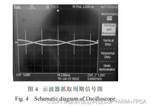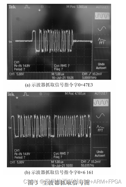 的周期消息,周期为 5 ms,图 4 为实测波形图,横坐标每格为 2.5 ms。可以看出,周期信号的周期为 5 ms。